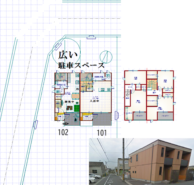 来客用に南側に1台分確保してあります。入居者は使用無料